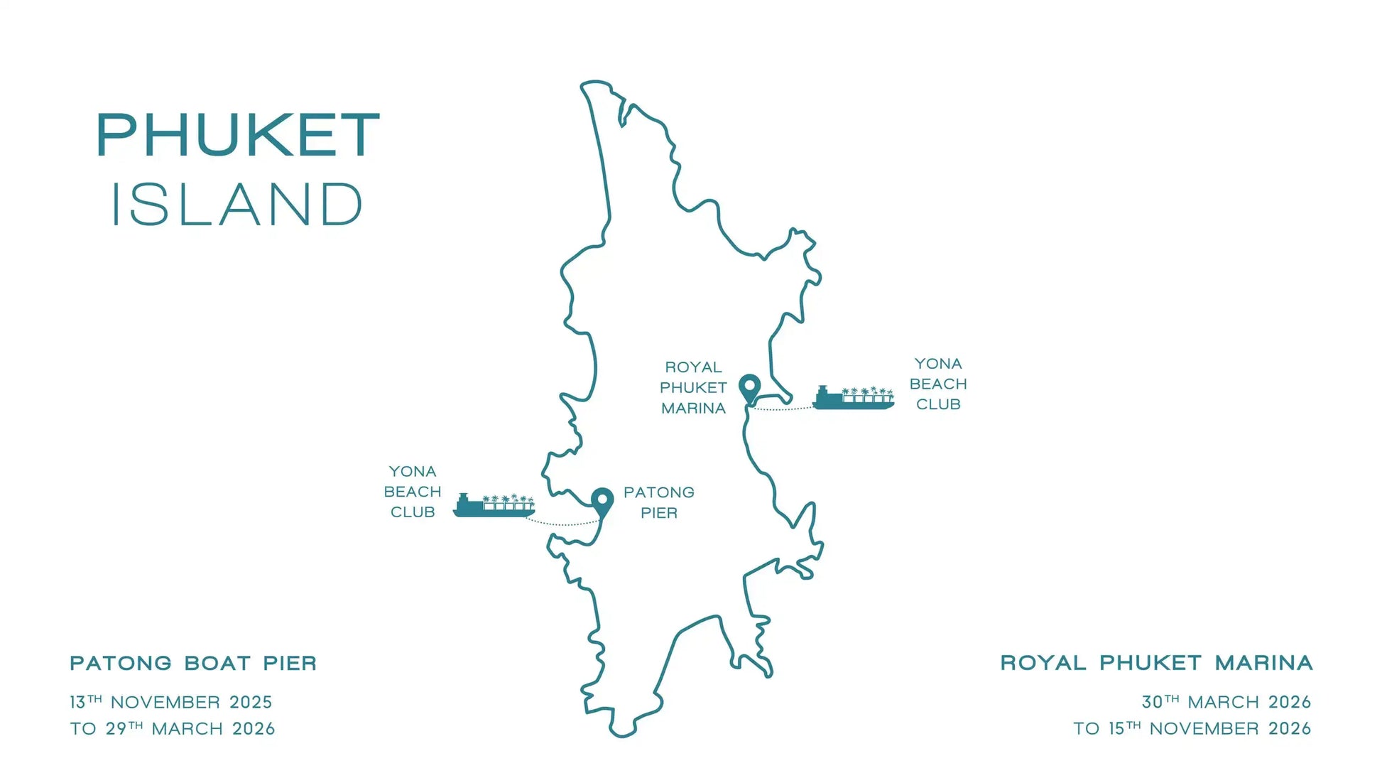 Depending on the season, the meeting point for your YONA Beach Club experience is organized from a well-known Phuket pier. Guests then take a scenic shuttle boat ride (about 10 minutes) to the floating beach club, adding to the adventure and sense of arrival.